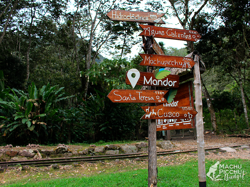 - Inicio de la caminata, 11 km hacia el poblado de Aguas Calientes.