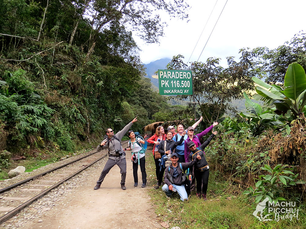 - Inicio de la caminata, 11 km hacia el poblado de Aguas Calientes.